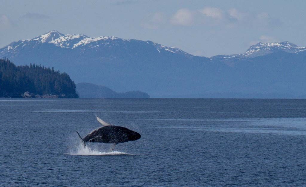 The morning sun found a few early risers scanning the sea for birds as National Geographic Venture made its way up Johnstone Strait towards Alert Bay. The first sighting of marine mammals occurred just before breakfast as a trio of sea otters were relaxing together midwater. We noted that these otters were surprisingly south of their expected location.