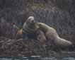 We arrived early this morning off Kamen Ariy, an amazing islet off northwest Bering Island, the westernmost Aleutian Island. The temperature was 6o C and the sea surface under low cloud cover like smooth, silvery billows as we set forth in our fleet of Zodiacs. Kamen Ariy is amazing for two reasons: first is the geology, as it is formed of columnar basalt with the columns positioned is such a way as to provide myriad nesting sites for birds; second is that every possible nesting site is being occupied by nesting seabirds—tens of thousands of them. Common and thick-billed murres nested shoulder-to-shoulder on narrow ledges. Tufted and horned puffins and smaller auklets occupied the highest ground. Kittiwakes shared the basalt cliffs lower on the island and here the black-legged kittiwakes nested side-by-side with the rare red-legged kittiwakes—of which we saw many! Red-faced and pelagic cormorants were resplendent in their breeding plumage. Young northern fur seals romped near kelp beds and giant Steller’s sea lions had a small rookery on the rocks.