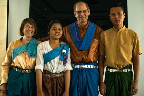 Once back on board we feasted on a well-earned breakfast. The crew entertained us with a fashion show of traditional Khmer garb, and a few guests had a chance to be dressed as well. Later in the morning we also had a tour of the behind-the-scenes parts of the ship and David Brotherson presented a fascinating talk on his archeological work around the Angkor temples we will see in a few days.