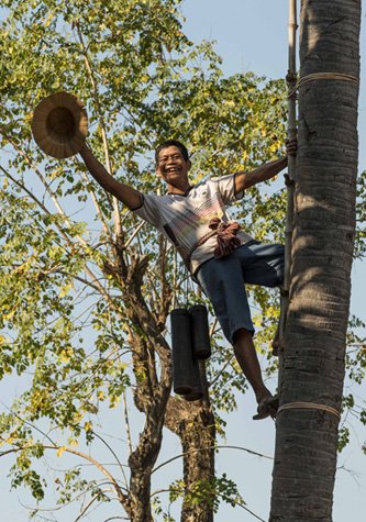 This morning we were up before dawn, downed a hasty and tasty snack, disembarked Jahan and climbed the banks of the Tonle Sap River. Waiting for us along a dusty dirt road were a line of ox-drawn carts! We climbed into the carts as the sun crested the palm trees across the river and trundled along the single track through lush verdant rice fields. We had a short stop at a lotus field, where we learned about the lotus plant. Beyond sporting a beautiful flower, the seeds are delicious and every part of the plant is useful. Photographers went nuts as sunrise light spilled into the fields and the pink flowers glowed in a sea of giant leaves.