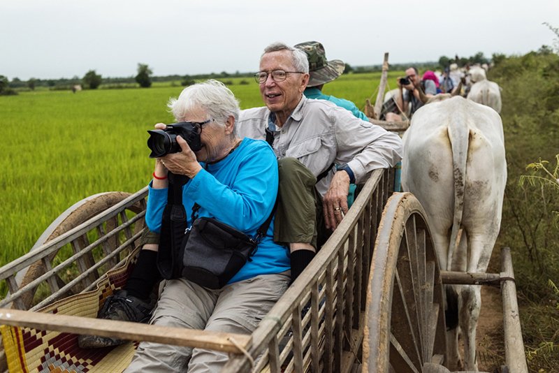Our day started early at 6:30 a.m. with rides on ox carts through the rice fields of a small Cambodian village. We then visited a school sponsored by Lindblad and National Geographic. The afternoon was spent visiting a pottery village and then a Vietnamese immigrant floating village.