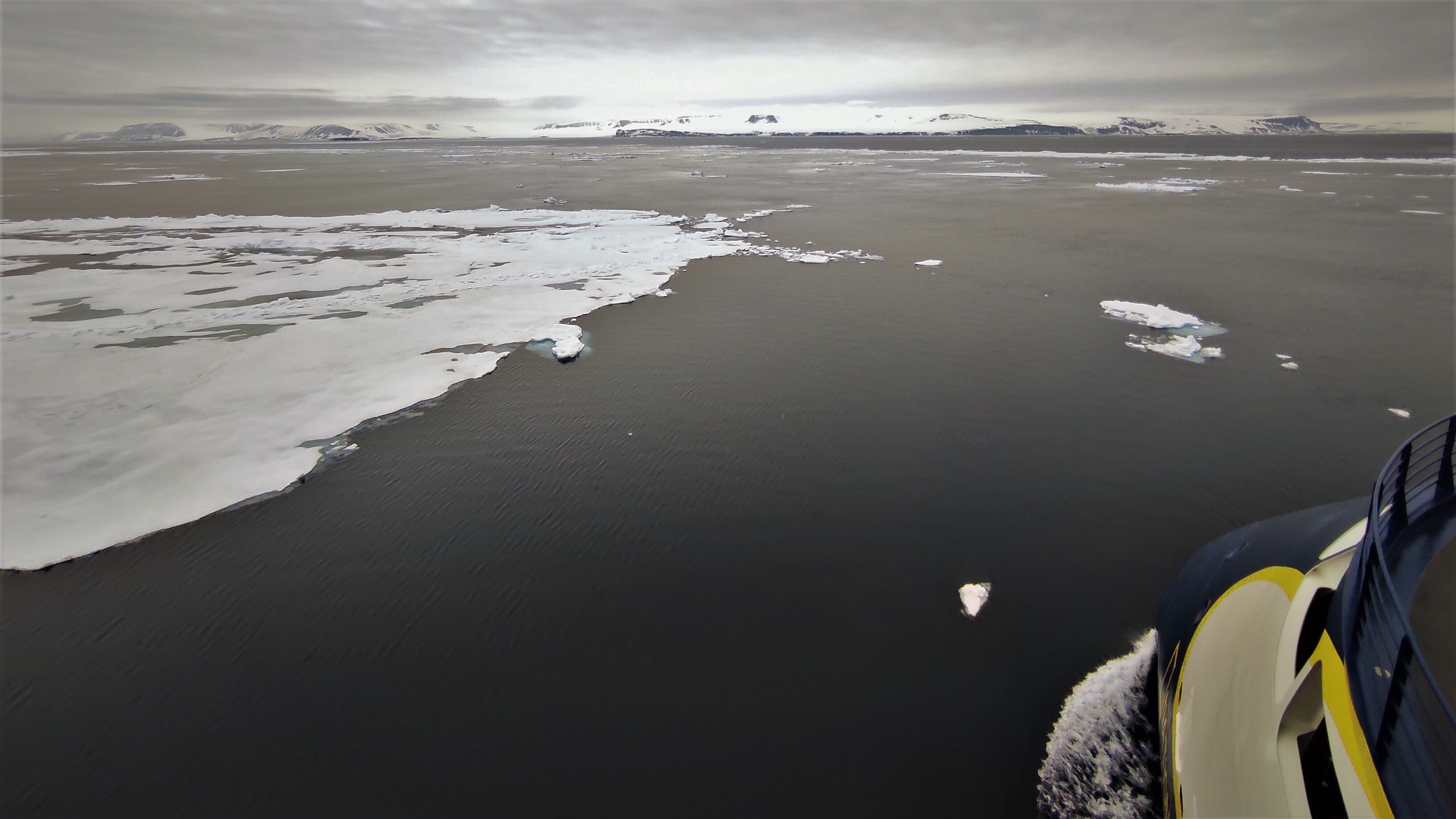 We awoke with a polar bear hangover. And the ice that had been our friend yesterday, turned unfriendly this morning. The best-laid plans of our Expedition Leader Stefano turned into a big frozen mess, as our morning kayak and landing were aborted when ice clogged the bay and landing site. Instead, we made our way back out of the fjords, heading for fast ice and the chance for even more wildlife encounters.