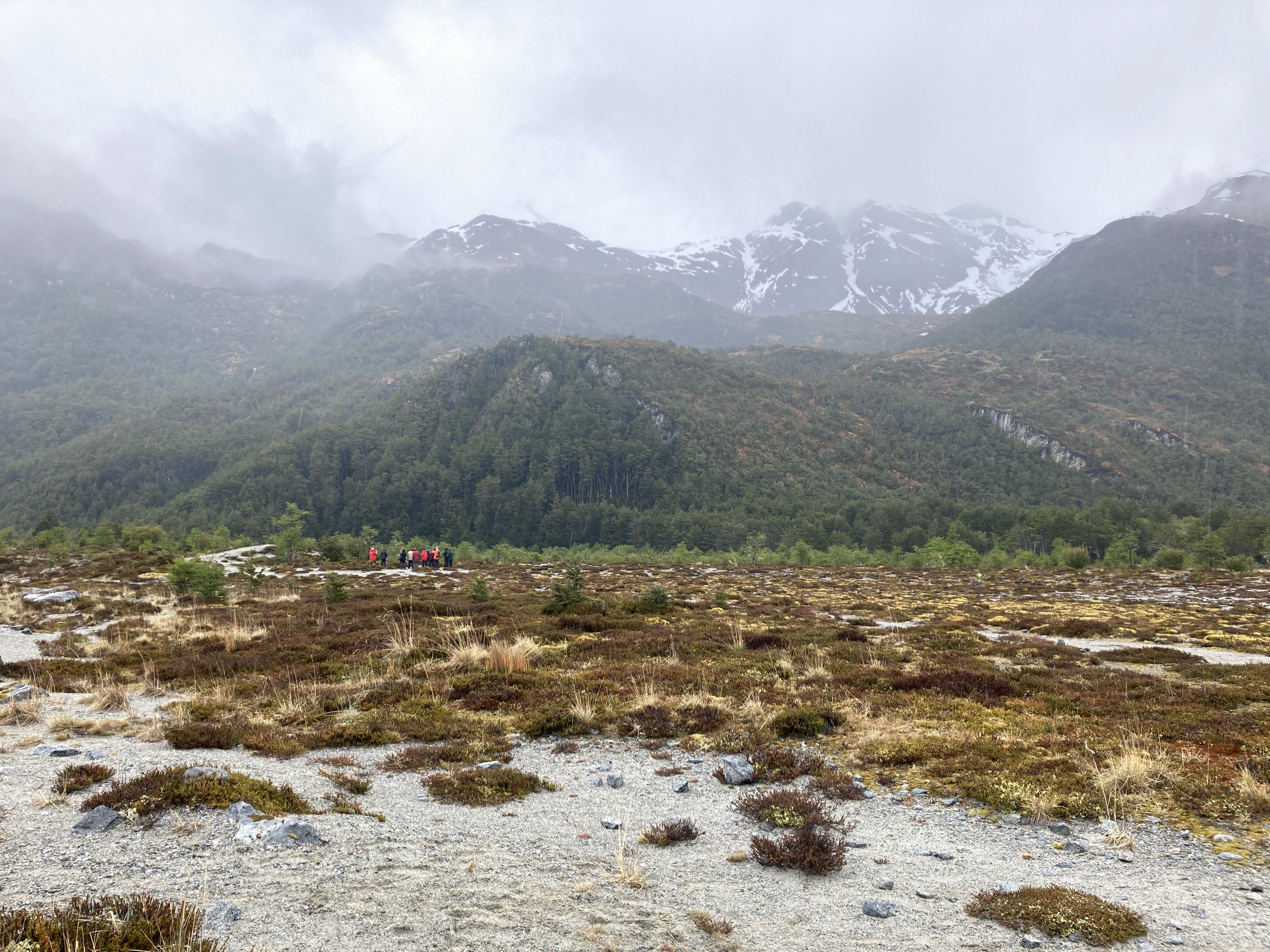 We entered Jackson Bay in light rain and wispy low clouds; views were coming and going just enough to expose the fresh dusting of spring snow on the mountain peaks. Early in the morning the team headed out to assess conditions on the beach. At the start of the landing we were blessed with a high tide. Almost sixty of us had chosen to take the long hike up the valley. As we came ashore we separated into small groups and headed out with members of the expedition team.