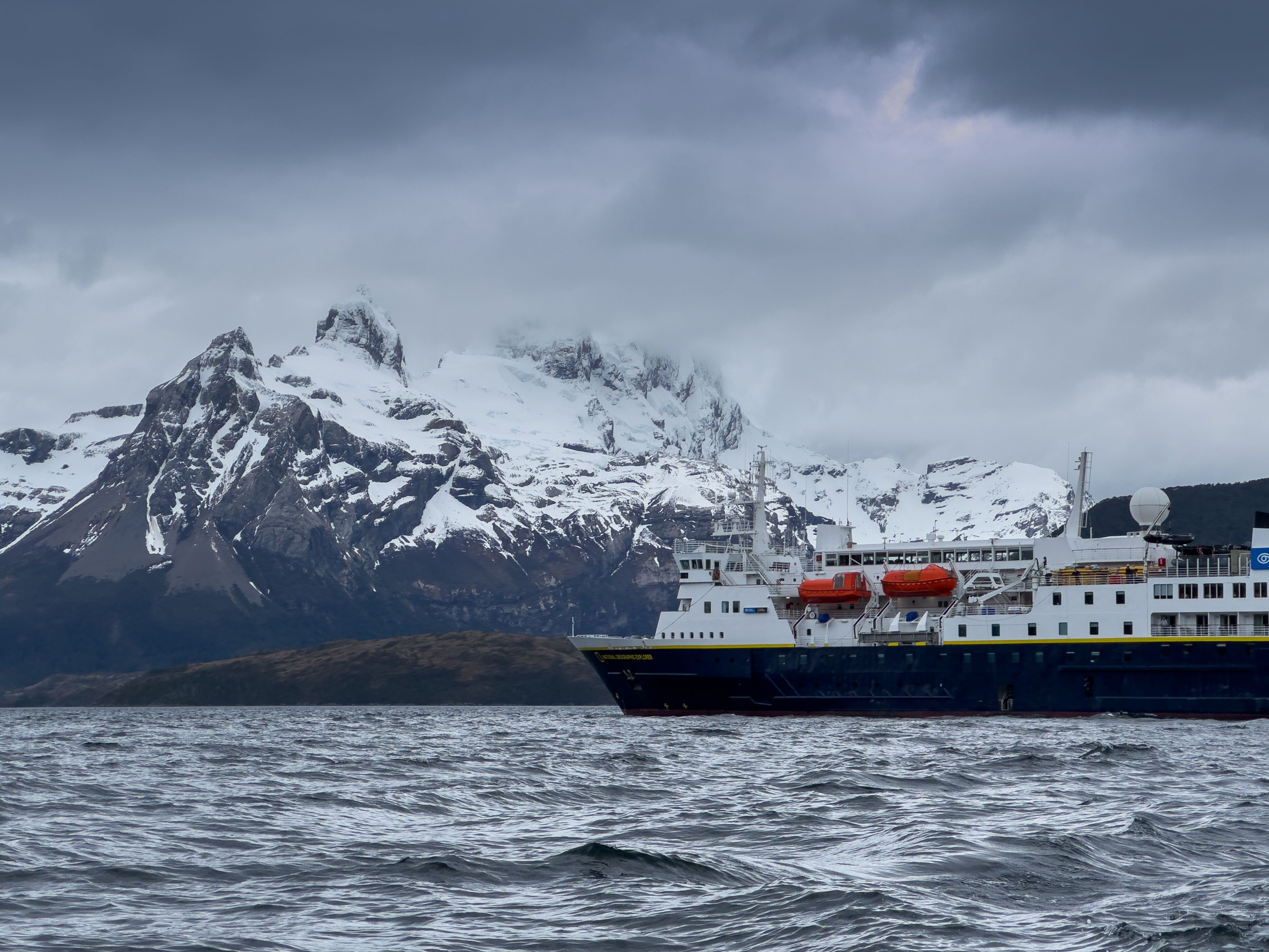 Back on board after a very full day, we swapped stories about our adventures, enjoyed a cocktail together, and settled in for a full recap. We discussed the elephant seals, microplastics, “not a beech, beech tree,” the observations of our diving team, and our plans for the coming day. Tired, but not exhausted, we headed off to dinner with anticipation of tomorrow’s activities at Aguila Glacier. More hiking and more ice in our future — all the beauty of Patagonia.