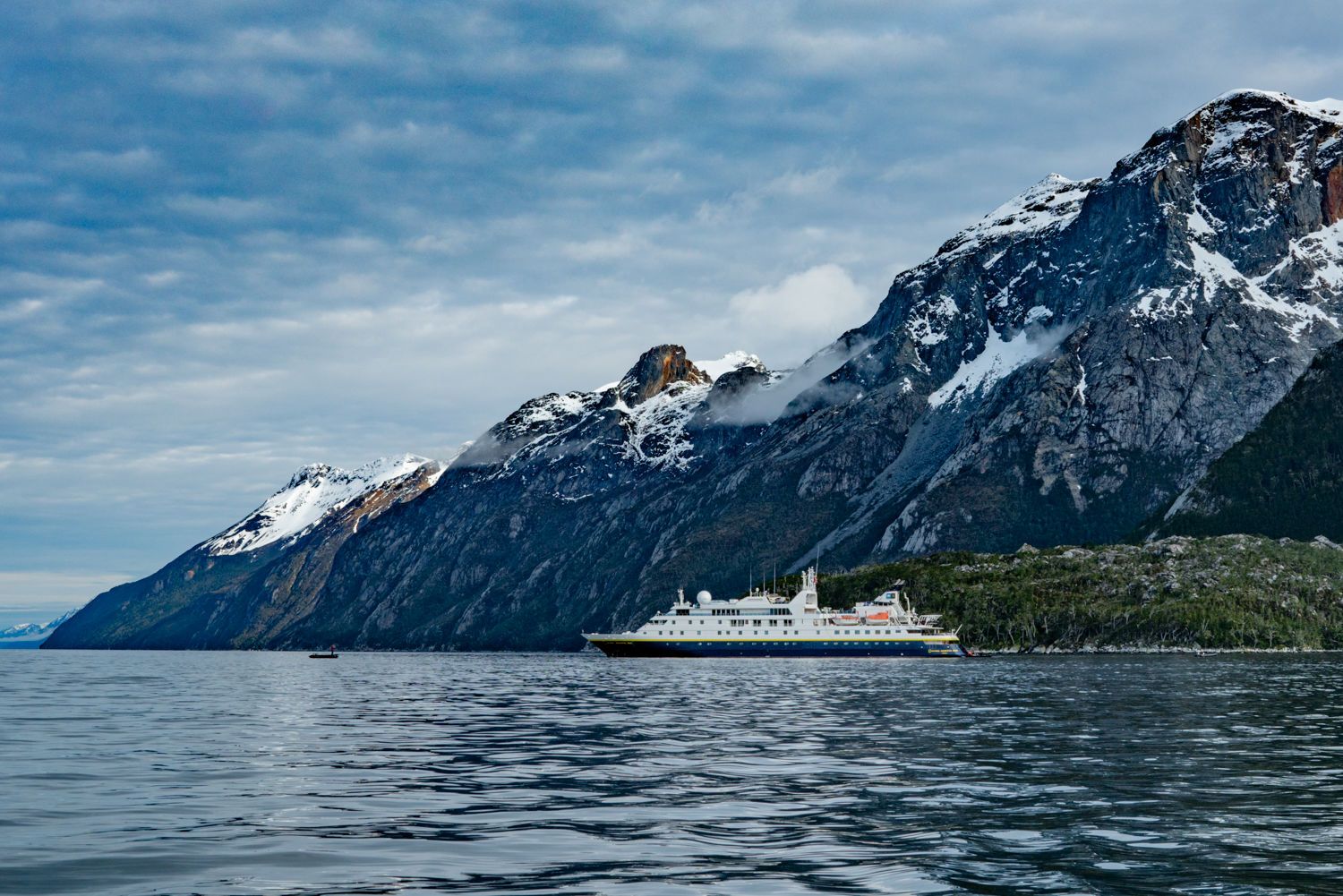 The tall snow-capped mountains surrounding us were beautifully lit by the morning sun, and the vast openness made one feel small and humbled. As we cruised to shore in our Zodiacs, we began spotting the largest existing pinniped, the southern elephant seal. Near the landing site, we saw around 100 Andean condors circling. Upon closer examination, we found the condors feeding on a dead elephant seal - a rare thing to see! We walked over driftwood, through meadows, and into the fungi-heavy forest. Guests who were feeling extra adventurous trekked to a scenic waterfall. It was a wonderful introduction to the southern Chilean ecosystem.