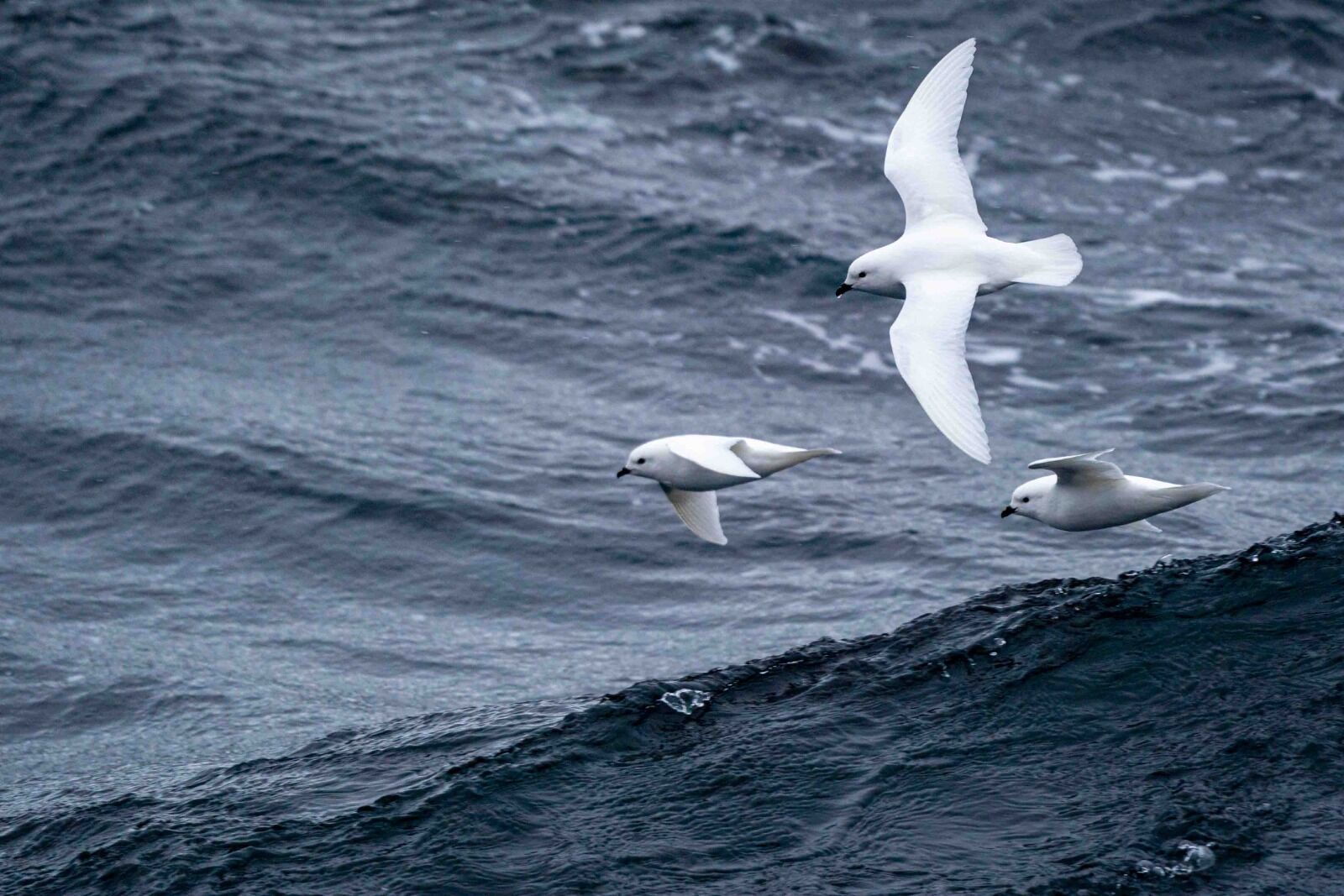 We couldn’t see land as we approached the Antarctic continent in the morning, but icebergs and porpoising penguins became elements of the seascape as we sailed to King George Island.