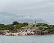 Our first exploration of the beautiful Kimberley Coast took us several miles up the lower reaches of the King George River in Zodiacs. We cruised between long ranges of glowing orange sandstone cliffs to the magnificent double waterfall at the head of the gorge. A month after the end of the rainy season, the falls still had quite a good flow. They thundered down on the east side with just enough light on the western drop that we could duck the Zodiacs in and give those who wanted one a nice refreshing shower.