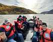 We left Puerto Natales early to catch the slack tide at Kirke Narrows at the exact right time of the morning. The weather was a bit drizzly, so we sent out Zodiacs with some brave souls to measure the wind and currents for our passage through this challenging, narrow sound. Around us, a few curious skuas and ashy-headed geese watched us. We were cleared to go and steamed through this passage easily, thanks to the Bridge Team!