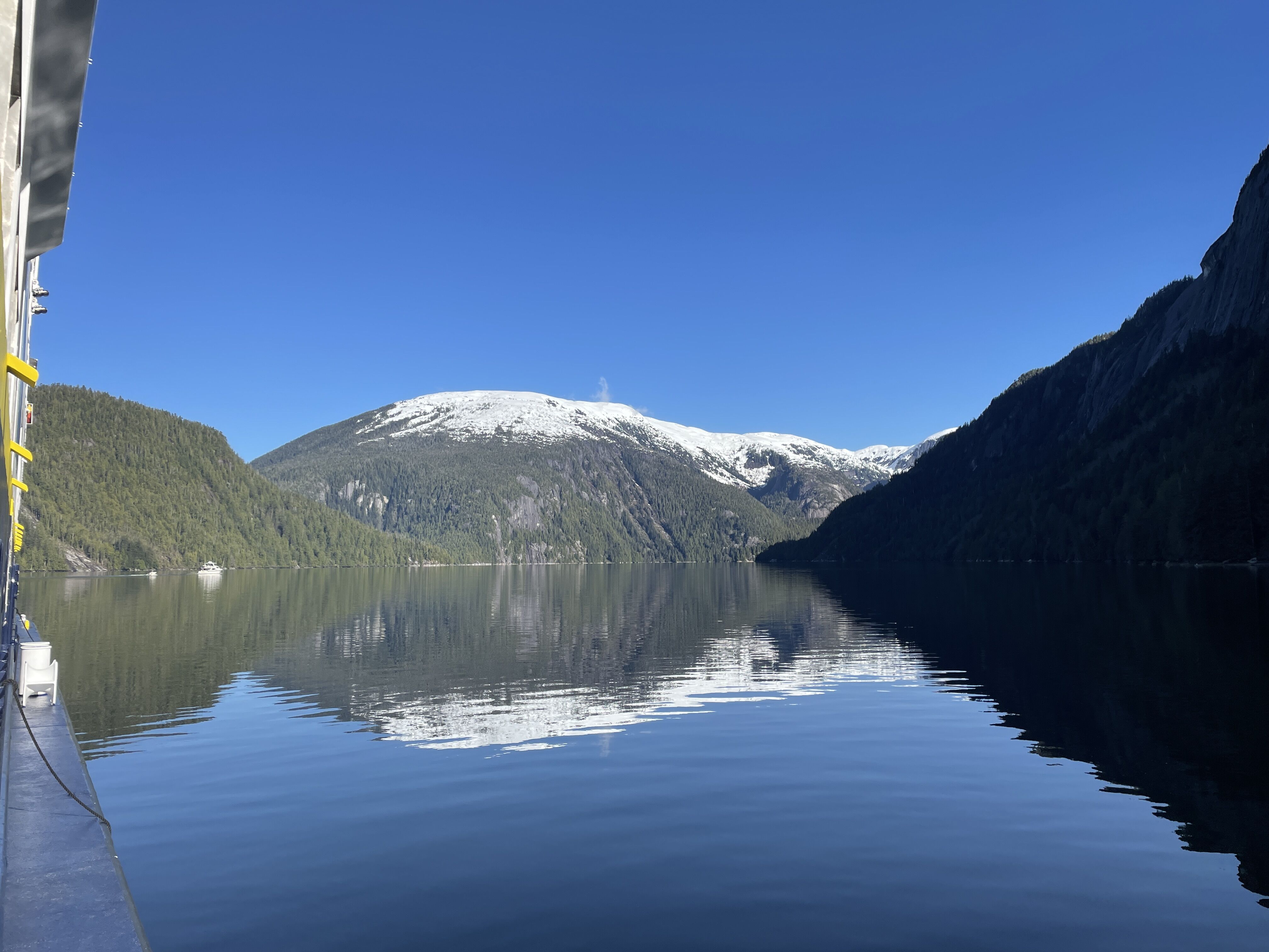 We had a phenomenal day at Glacier Bay National Park. The sun was out, as was the wildlife. The bow was the place to be. Please enjoy the dialogue of the day from the bow: Ah, Lovely Sunrise. Dall’s porpoise! Killer whales! Oo, swans! Calving center! Bald eagle on ice. Brown bear, That’s a big one. Bald eagle in nest. I wish someone would find me a marmot. Marmot at 10! Where? Do you see that crack in the rock? To the left you’ll see a tree. Now go below the tree to the round rock. 6 goats plus bonus outcast goat. Low goats on ledge, wedged in nicely. Goats, goats everywhere, and a marmot here or there. Two puffins. Nice beak action. It’s like “I Spy” out here. Low goat at 11. Oh, really low goat. Oh, yea that’s a fella. Goats looking right at us, folks, good goat face. Oh, and whale spots at 1. Oh boy, I’m exhausted. That’s ok, take it one goat at a time. There’s a spout off the point. Classic humpback. Oh, glaucous winged gulls nesting at 2. And otters! Fly by puffins! Porpoising harbor porpoise! Needless to say, we had a good time. Photo by Shannon Malone