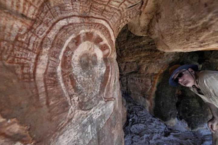 What an uplifting and stunning day at The Kimberley coast. Today we had the opportunity to visit Bigge Island, a place of significance for the Aboriginal culture and rock art. This rugged island holds many mysteries and secrets and also many unanswered questions. This is where we can contemplate the intriguing Wandjina style of rock art. We were able to see a representation of the Kaiara, or Sea Wandjina, a very powerful mystical entity for the aboriginal culture of this region. Wandjinas are considered to be the creators of human descendants, the seas, the land and laws, and are still able to exert their powers. The Wandjinas are intrinsically linked to the mythological life, social organization and seasonal movements of Indigenous Kimberley people. This particular Kaiara was exceptionally large in size, painted with red ocher and grooved eyes that seemed to watch every move in this important ceremonial and meeting ground. With its distinctive halo headdress representing the monsoon cumulous clouds, Kaiara is able to wield destructive power, controlling floods, cyclones and lightning. This site is also home to some controversial rock art. What makes these paintings so fascinating is the depiction of sailing ships and a man with European features who appears to be smoking pipes and sitting on small row boats. There is an ongoing debate about these notorious paintings, as no one knows for sure, who are the visitors and where did they come from. It has been suggested they could be Dutch sailors and others have suggested the images depict the arrival of Chinese ships. Or maybe they could be related to Macassans? This is a mystery still to be solved. After a delicious lunch savored on deck, it was time to head to another mysterious tour! This time we boarded our Zodiacs without knowing our destination… and what a delightful surprise! The expedition and hotel management team were waiting for us in a spectacular hidden tidal cave! Surrounded by turquoise waters, hidden in a little bay and protected from the wind, the cave performs as an amazing amphitheater with perfect acoustic conditions. With the guitar and cocktails in hand, we all sang songs that lifted our spirits, while enjoying our appetizing refreshments. What a way to end our gorgeous day in the unique and special Kimberley coast!