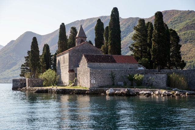 We docked alongside the city of Kotor and boarded our buses at 8:30 before motoring the few kilometers to the picturesque village of Perast. This hamlet once made its living from fishing, smuggling, and piracy. It was a strategic bastion of Venetian influence in the area. It was so important to the “Most Serene Empire” that the Doge and the Venetian Senate appointed the local governor. We first visited the postage stamp sized artificial island “Gospa od Skrpjela” in the middle of the fjord. There is a legend, which says fisherman found an icon floating near this spot. They retrieved it and brought it back to St. Nikolai’s church in town. The next day the icon was gone and fisherman found it floating at the same spot in the fjord. This cat and mouse game continued for some time. Finally, the fisherman decided that every time one of them passed this place they would drop rocks in the sea. Gradually it formed an island and in the end they erected a church to the Virgin Mary and placed her icon in the church on this island. Legends die-hard, and I will let you decide on the veracity of this one. Our next visit took us to what is today the local maritime museum, the elegant former home of the Venetian consul in Perast. Our final stop in Perast was for a brief rest at the elegant small Hotel Conté.