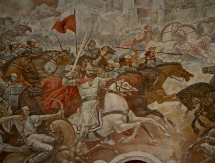 George Kastrioti is Albania's national hero, and he is better known by the name of Skanderbeg. The Skanderbeg Museum was beautifully built about twenty years ago, on the same location as a castle. With our local experts guiding us, we learned about Scanderbeg repelling the Ottomans from this area, and we could admire some of the original artifacts and some modern-day frescoes that depicted the battles in a marvelous way.