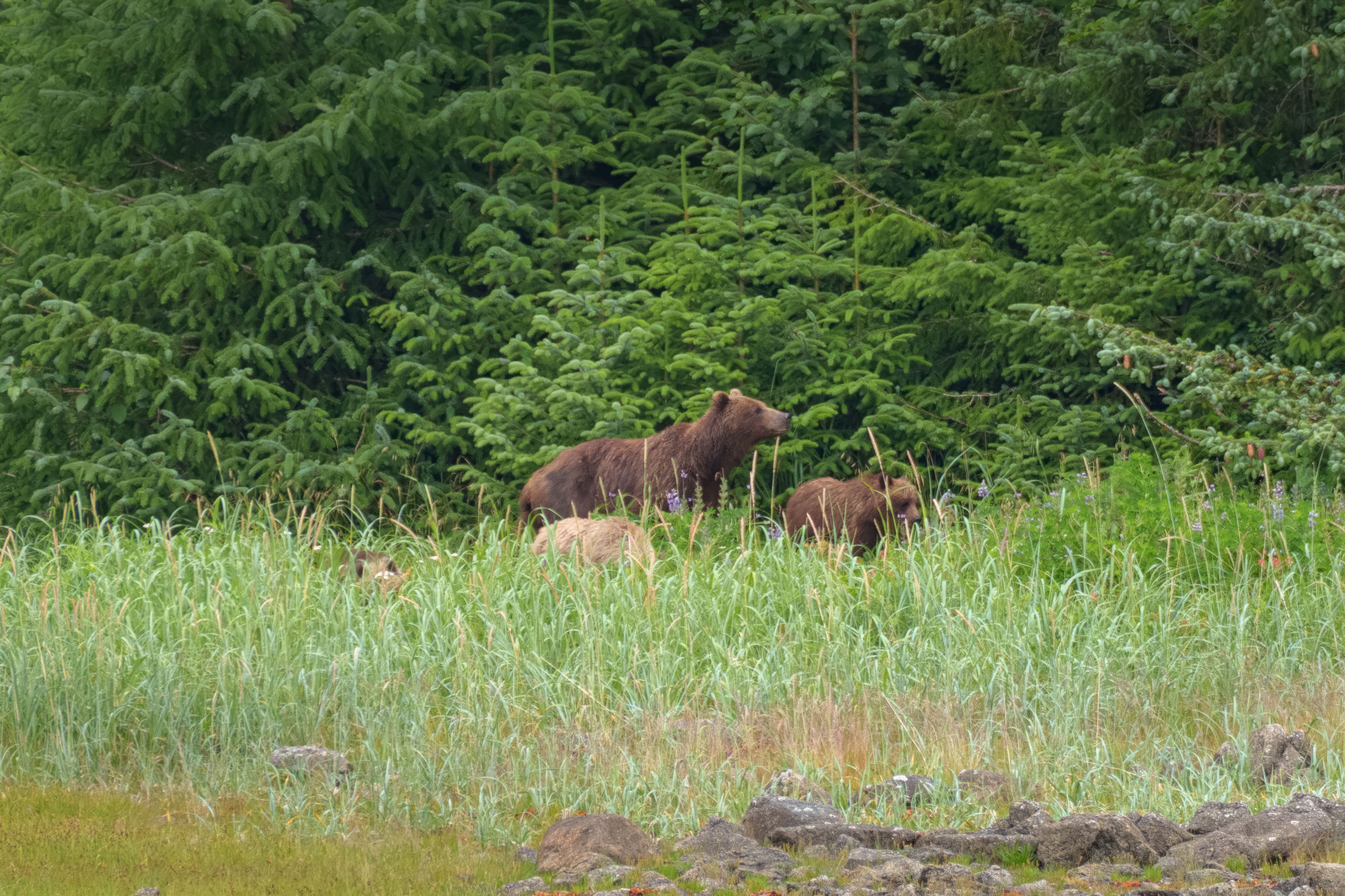 An announcement to rise came a few minutes earlier than usual as we approached the northwestern coastline of Kuiu Island, due to a black bear observed along the coastline. Coffee mugs in hands, many passengers made their way to the bow to view the bear.