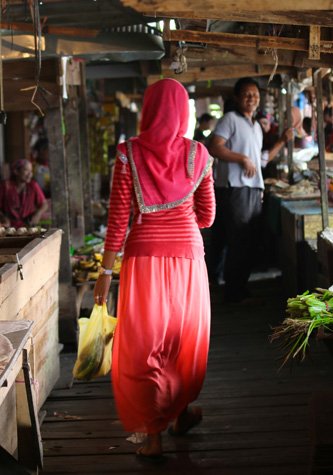 There are some days that can define an entire expedition and our day alongside in Kumai did exactly that. Upon setting out on a tour of the surrounding area it became immediately apparent that we were extremely welcome within this community. Shopkeepers in the waterside market asked to take photos of us in a reversal of what is perhaps a more typical situation. The junior high school put on a dizzying display of costumed dance, replete with ornate feathered headdresses and fiercely colored shields and spears.