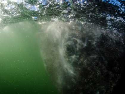 Protected from the rolling, open Pacific by sandy Isla Magdelena, we slept hard and awoke rested for a day in the sun. This lagoon not only makes for a great anchorage, but also harbors giant cetaceans and their not-so-giant offspring. Taking to our Zodiacs, we zipped along mangroves and sand dunes to the spot where California grey whales are regularly found. We followed many cow-calf pairs by spotting short, bushy clouds of water vapor projected high above the wind-tossed water with each exhalation. Tidal currents are magnified through the narrow Boca de Soledad and it was here that most pairs were found holding their position against the running tide. These whales will start a migration to the Arctic any day now so it’s easy to imagine them using the running tide as a watery treadmill, especially for the 3 month old calfs. We rattled off a dozen shots with each breaching baby and pointed at distant, tombstone-shaped heads held high out of the water. An adult grey whale spyhopping in the distance is very difficult to miss. It could be easily mistaken for a gray monolith at once there, the next second razed by the sea.