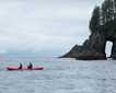 Calm water in Hanus Bay greeted us, and the National Geographic Sea Bird sailed towards our anchorage for morning operations. After breakfast, we headed to shore to enjoy hikes along a salmon-spawning stream and through sections of towering old-growth forest towards Lake Eva. Many guests took advantage of kayaks and paddled in the quiet bay, or toward a small pond upstream of a small waterfall. The salmon had arrived, though not yet in the numbers expected later in the season. A small gillnet fishing boat was plying the water near our anchorage. The passengers aboard shared that they had caught more than 30 sockeye salmon that morning. With fish in the stream, the bears will not be far behind, and a few lucky guests caught sight of a juvenile brown bear near the stream during the second round of kayaking.