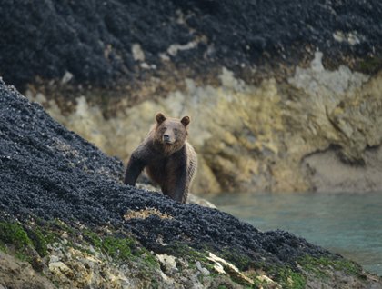 Two logging humpback whales greeted us as we steamed towards Hanus Bay. After a hearty breakfast, and with the sun glistening off the calm waters, we made our way ashore at the Lake Eva trailhead. The tide was low and as we picked our way through the cockle shells, butter clams, and lonely sea stars that filled the intertidal zone; we found a young brown bear making his way along the shoreline. Once he was on his way, the various hiking groups set off to explore the beautiful forest along the Lake Eva trail.