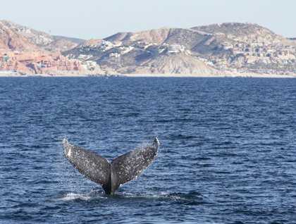 We couldn’t have started the first full day of our expedition in a better way, with a glorious sunrise and a humpback whale singing right next to us! As the National Geographic Sea Bird headed towards the southern tip of the Baja California peninsula, we encountered the whale, and after stopping and lowering a hydrophone into the water, we had the privilege of listening live to the intriguing amazing vocalizations of the whale! That alone gave us a bit more information about that particular whale, as is known that only male humpbacks sing, and they only do so on their winter breeding areas. We listened for a while, some of us even taking advantage of the many capabilities of smartphones to record video clips of the hydrophone in order to capture the whale’s song. Later we continued our previous course and arrived to Land’s End, also known as the Friar’s Rocks, to see the world famous granite arch that has become the symbol of Cabo San Lucas.