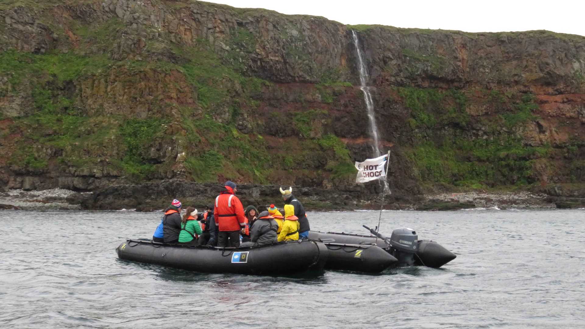 During our Zodiac tours we spotted a Viking boat, but these were not the fierce Icelandic Vikings, rather friendly Norwegian and Polish Vikings offering us hot chocolate—we were happy to see them.