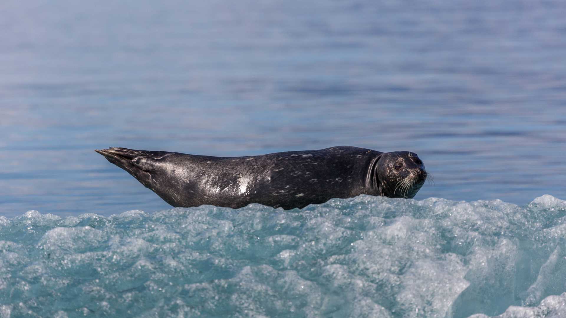 We woke to a beautifully calm and sunny morning as we eased towards the Le Conte Glacier mouth. Low clouds rolled over the tree-lined mountains while marbled murrelets bobbed in the glassy waters. The glacier itself has retreated several miles back from the shoreline and is no longer visible, but we know it is still quite active by the large number of icebergs that collect near its terminal moraine. Boarding the expedition landing craft, we crossed the bar and cruised through the icebergs that were scattered about and glistening in the rising sun. Sculpted by water and softened by the sun, these icebergs spend their days plying the currents and resting on the shallow sea bed. Some of the icebergs had deep blue sections, which are always a favorite of the photographers. One of the icebergs calved off a small piece and filled the sea with smaller bits of brash ice.