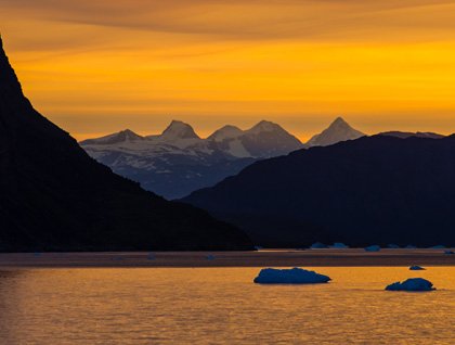 With overcast skies, the intense blue of the glacial ice was accentuated. Every direction was a photo opportunity. Ice was the foreground, in many layers and textures, with a backdrop of massive mountains covered in trees and shrouded in fog. Thousands of images were created! At low tide, many of the bergs were stranded, allowing us to observe their entire structure. Taking advantage of the exposed tidal area, we were able to stand amongst the grounded bergs and even touch them. What a treat!