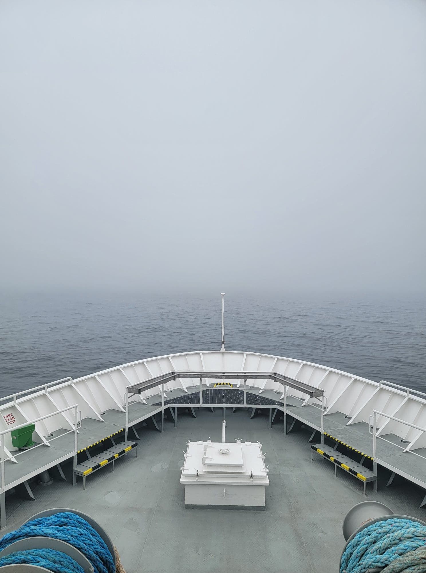Today we woke up early to a foggy morning in LeConte Bay and hopped right into our Zodiacs to explore. LeConte Bay is like an ice sculpture garden, full of glacier-blue pieces of ice that calved from nearby LeConte Glacier. We imagined the different shapes we could see in ice pieces, got on shore for a side-by-side comparison to see how big these icebergs can get, and enjoyed watching for birds that land on these pieces of ice.