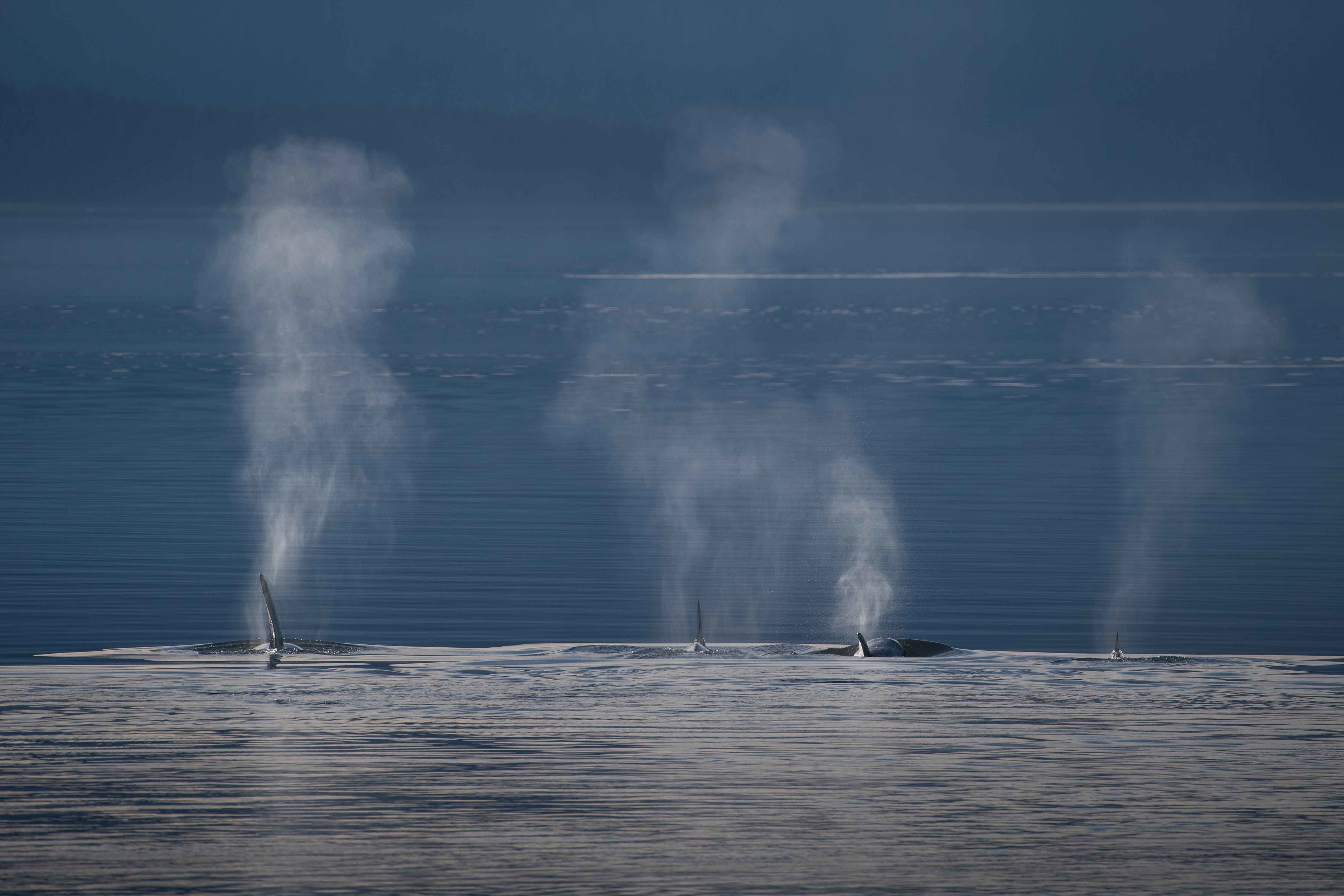It was a slow morning as our guests were quietly moving in and out of the lounge, gathering their morning coffee and heading back to their rooms before the day would officially begin. Then, in a moment, everything changed. Just moments before the actual wake-up call, a slightly earlier wake –up call came over the loudspeakers. Killer whales have been spotted ahead of the ship. As we all headed for the bow of the ship, the plumes of whale spouts could be seen in the distance. The early morning light was such that it was hard to see where the sea ended and the sky began. The blue monochrome made the whales and their spouts stand out from the background like a surealist painting which added to mood. Our second morning on board and already we had seen black bear, mountain goats, spectaculer glaciers, and now, killer whales. We watched for about a half hour when our expedition leader made the announcement that breakfast would be delayed to afford us the opportunity to watch the whales a little longer, something that we, who were watching whales already had decided.