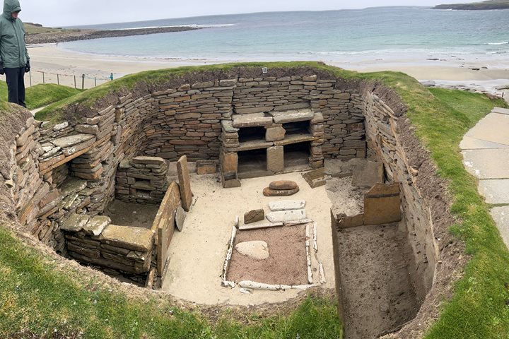 After breakfast, we departed from the ship for our morning activities. Most guests went on hikes along coastal sea cliffs of the Shetland Islands. We walked by several moors, which are uncultivated highland areas covered in low-growing heath. There were sea birds flying over the coast, sheep grazing in the meadows, and sea cliffs overlooking the North Atlantic. There were curious circular stone enclosures where farmers grew cabbage protected from the winds and high latitude (60 degrees North) weather.