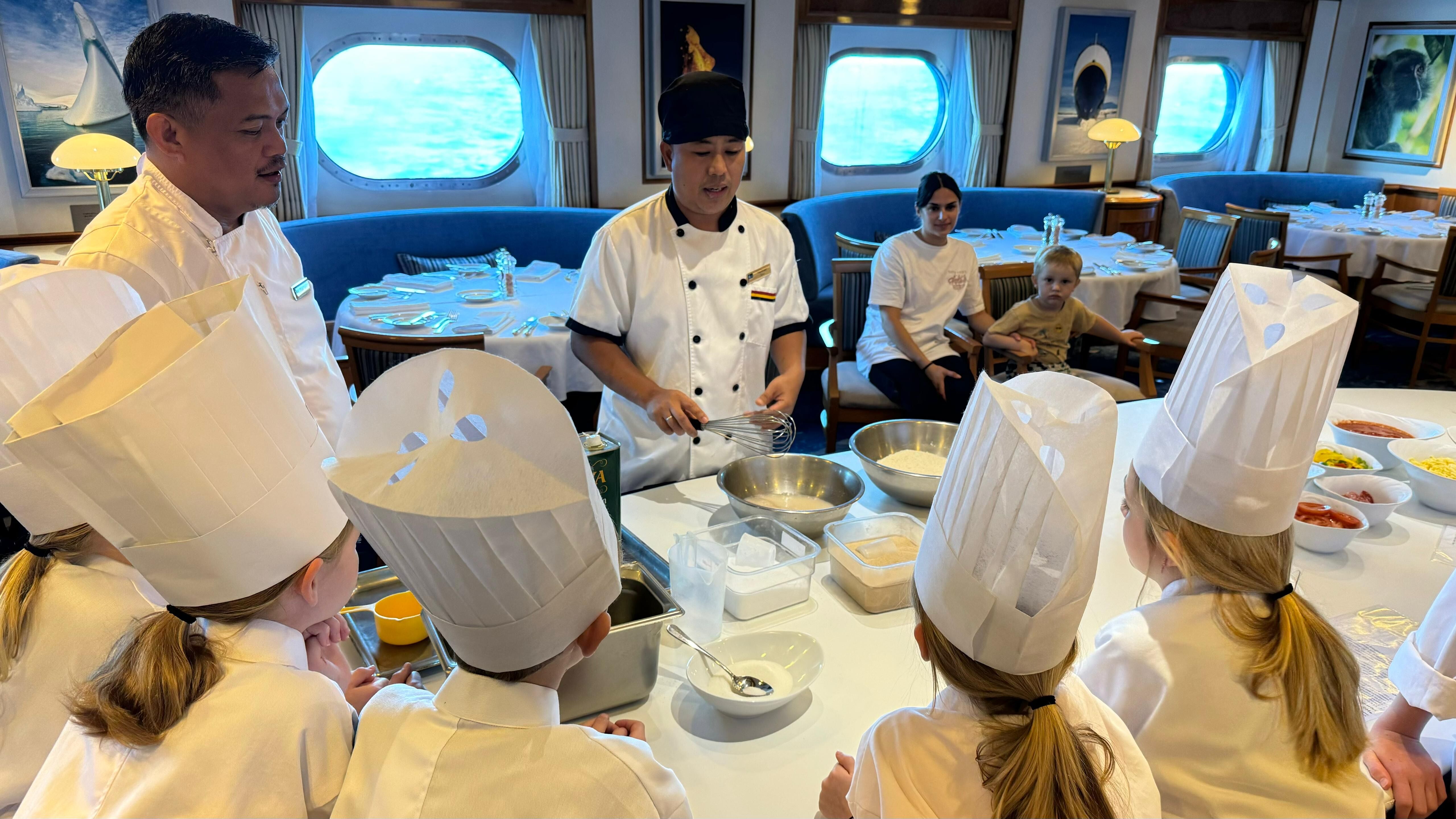 After the welcome, those keen to join were invited into the tribal chief’s hut, where traditional meetings are held to discuss village community issues and activities. A display of cultural food preparation was held, and our ship’s young guests learned to scrape coconuts and make coconut milk. Diving was of the essence, and dive masters Mike and Rachael explored the undersea world of Lifou with guests.