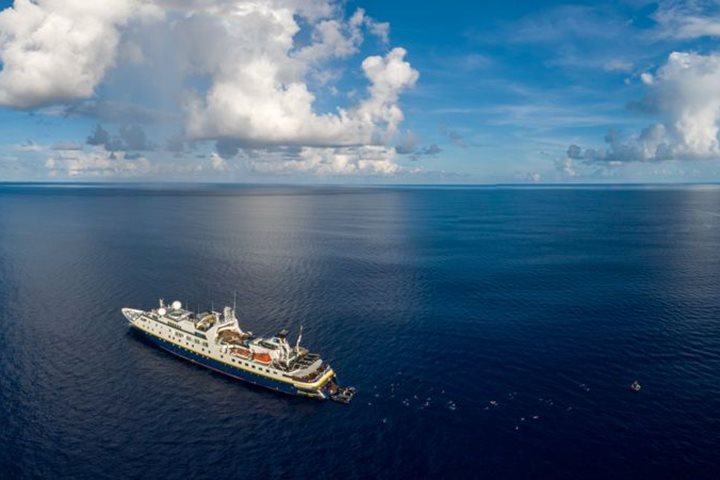 When you explore the South Pacific by ship it is inevitable that you will have to have a day at sea to navigate the vast distances between the many islands and atolls. Although, a day at sea is never a ‘wasted’ day onboard National Geographic Orion ! We enjoyed a few fascinating lectures from our natural history staff, had time to catch up on editing our photos with our photography instructors, and – of course – feasted on the many delicious meals prepared by our outstanding galley and hotel teams. But, the highlight of our day had to be a blue water swim in over 6000 feet of crystal clear blue water right in the middle of the South Pacific!