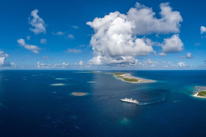 Tahanea Atoll is located in the central region of the Tuamotu Group, which is part of French Polynesia. We knew very little about Tahaena Atoll, apart from what we could see on the charts, so our visit was an expedition stop. Tahanea Atoll is quite large, measuring 48 km (29.8 mi) long by 15.2 km (9.44 mi) wide. The wide and deep inner lagoon covers about 525 km² (200 mi²) and the land area covers about 8 km² (3 mi²). There are three passes on NE side of the atoll that give access to the interior lagoon, and the middle one (Teavatapu) is wide enough and deep enough to have allowed us to bring our ship right inside for an anchorage. The southern reef fringing the atoll is wider than the northern one, but the largest islands are on the narrower northern rim. There once were several small settlements here, but today Tahanea is uninhabited, although it is visited occasionally by islanders from neighboring atolls. Small groups of people come to the island seasonally to harvest coconuts and produce copra. The southern-most pass afforded us some exciting drift snorkeling in the morning. We offered two rounds of this adventure, because conditions were perfect to let our guests get swept into the lagoon by a strong, swift tidal movement. The coral is robust and healthy in the pass and it was interesting to watch the little fish struggling hard to stay near their chosen nooks and crannies while the water was pushing through. The first group of snorkelers was swept through so quickly, there was time to do it again! The second group (which included a few from the first bunch that wanted to experience it yet again) began their drift, but partway through it the flow slowed suddenly and started moving in the opposite direction! The change was so fast, they all just stayed in the water and enjoyed it. The SCUBA divers also enjoyed the reef this morning and went to the northern-most channel for another amazing underwater experience. In the meantime, nearly half of the guests opted to go ashore and explore the uninhabited motu right near the ship’s anchorage. This islet is very different from what we had experienced during the previous part of the voyage. It is rugged and composed of a solid, slightly raised dark coralline platform upon which is loose, unconsolidated coral rubble. There is virtually no sand to be seen onshore. The plant life is fascinating, as it must survive in extremely poor soil, but it is beautifully adapted to this situation and is thriving. The inner shoreline was littered with seashells, although many were broken and badly worn, and we could see lots of fish in the shallows, such as parrot fish and surgeon fish, and even an eagle ray inside a shallow tidal lagoon near the landing. We also could see some giant clams in the lagoon. As we walked about, most of us heard the beautiful songs of the endemic Tuamotu reed warbler…and a few of us even managed to see one. After lunch, we organized more water activities. The snorkelers went out again, only this time they explored the inner reef system by way of the wonderful snorkel platform. The SCUBA divers went to a different dive site from the one they experienced in the early morning. In addition, the glass-bottomed Zodiac (GBZ) was put in the water in order to revisit the southern-most pass and show it to those who didn’t get to see it earlier. It was quite fun to shut off the engine of the GBZ and let the current take it through the pass as we witnessed standing surface waves along either side and robust coral below us. Everyone returned to the ship in the late afternoon around tea time, so there was still enough sunlight for the Captain to see his way safely back out of the lagoon and get us underway towards our next destination.