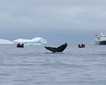 Working together, the staff and crew teams set up our kayak platform off the marina deck at National Geographic Orion’s stern, ready to launch everyone out to explore the beautiful surroundings. Others set out to explore by Zodiac. Gentoo penguins porpoised through the ice floes, and a surprise visit from a playful minke whale quickly made for an exciting morning on the water.