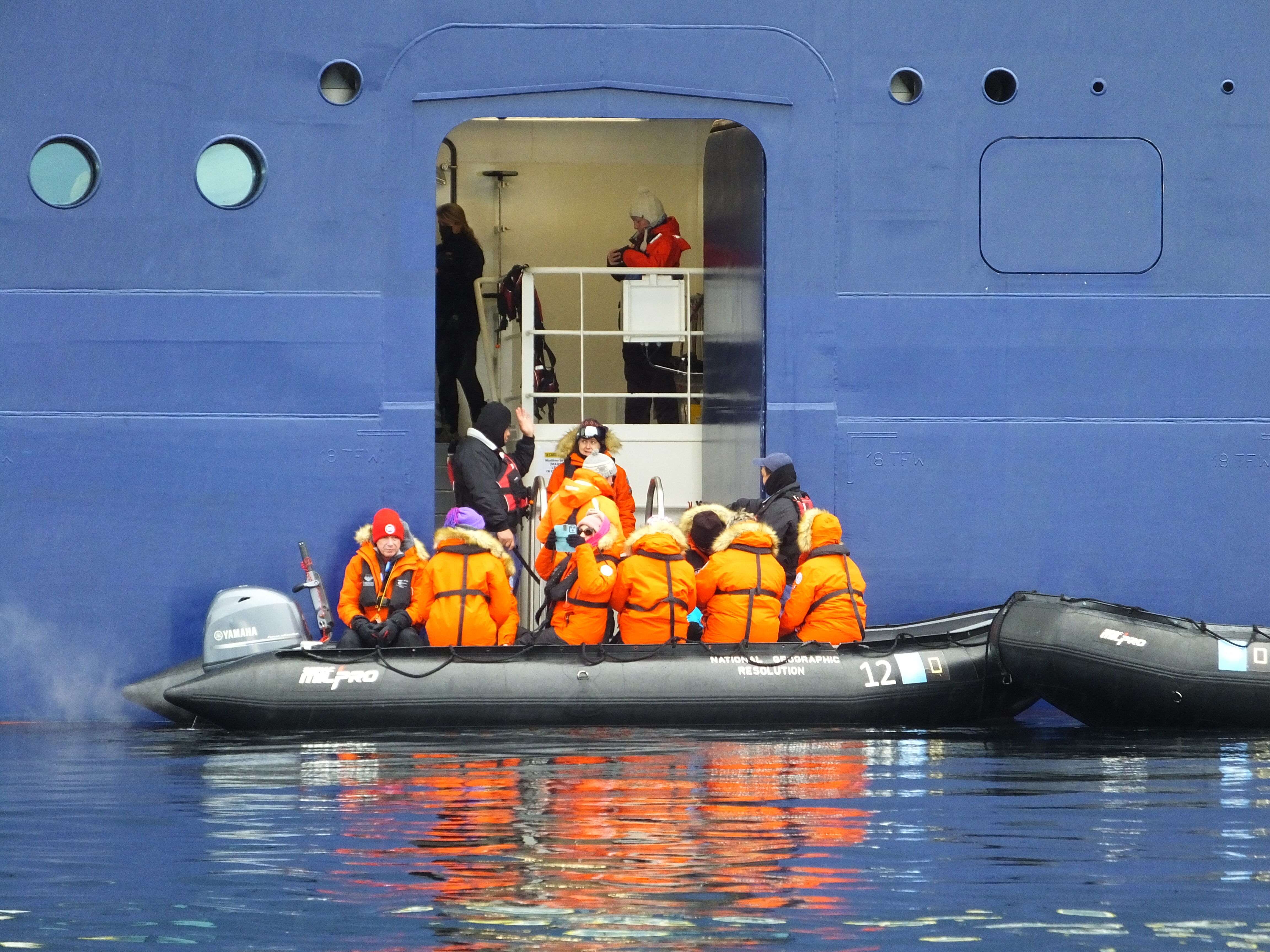 Snow petrels passed overhead, their wings silent, while a kelp gull announced her presence, coming over to the Zodiacs to check us out as she called plaintively. Through rain drenched hats and splattered goggles, smiling faces told me that there are people on board who are clearly up for all kinds of conditions. We are Lindblad, right?