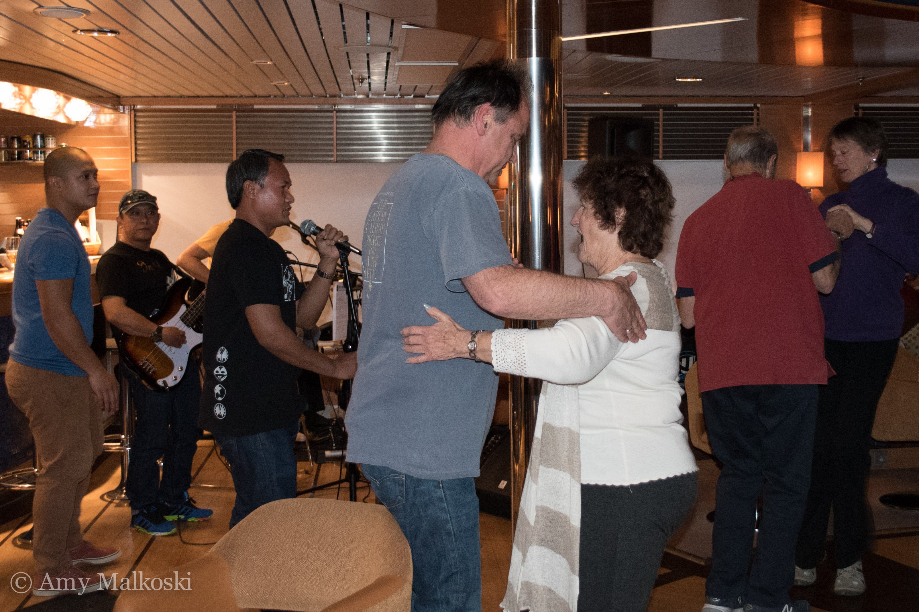After returning to the ship for dinner, we proceeded onwards to Trollfjord. Here the bridge team demonstrated the ship’s capabilities for delicate maneuvering, as well as their own, in edging the bow right up to the cliff wall to allow a branch to be plucked from a tree.