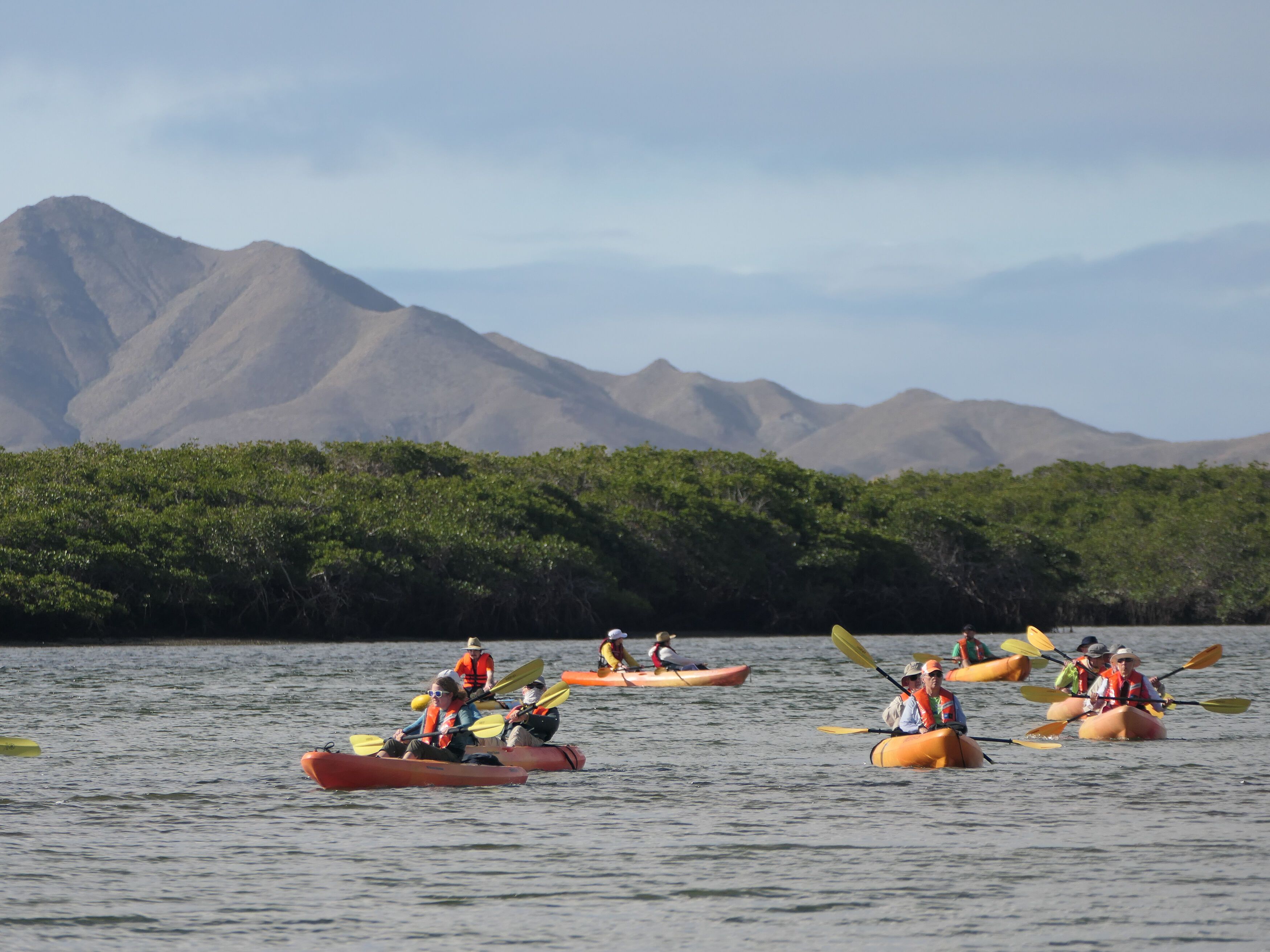 Today we woke up to a beautiful and slightly cloudy sunrise in Magdalena Bay aboard National Geographic Venture. We picked up anchor and sailed a short distance for an early docking at San Carlos, where our coaches awaited. We took a short bus ride up the Baja California Sur peninsula to the small town of Lopez Mateos. Here we boarded pangas and set out into the shallow lagoons in search of mother and calf grey whales. It wasn’t long before we saw our first spouts in the distance. We observed a mother with a baby that was only a few weeks old. The mother was teaching her young one how to swim against a current in preparation for their long migration north in a few months. These majestic creatures have the longest migration of any mammal on the planet. To see them in their natural habitat is truly remarkable.