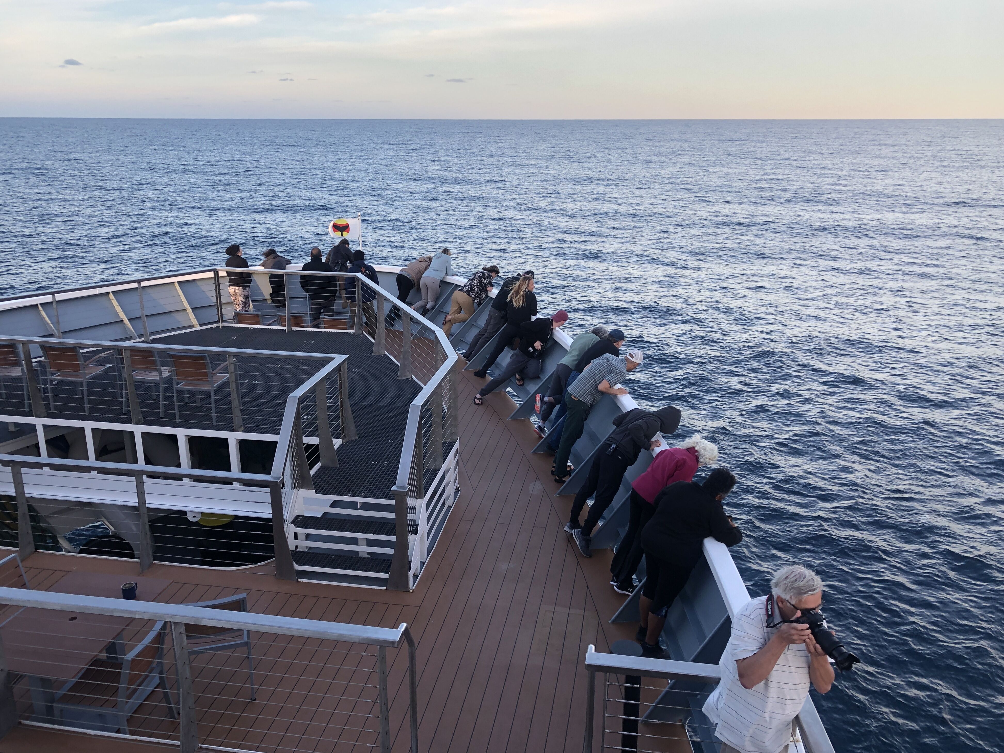 Today, guests woke up to a beautiful sunrise followed by breaching humpback whales, diving seabirds, and jumping common dolphins in the thousands. A feeding frenzy followed us throughout the day. Then guests had the opportunity to explore beautiful Sand Dollar Beach. They had the option of venturing to the Pacific side to see the sand dollars or follow the bay for an abundance of wildlife. Along the bay, we observed pipers, sea snails, coyotes, blue herrings, and various wildlife. The abundance of birds made it an ornithologist’s paradise. The day ended with a bonfire and local music, and guests danced and roasted s’mores at sunset.