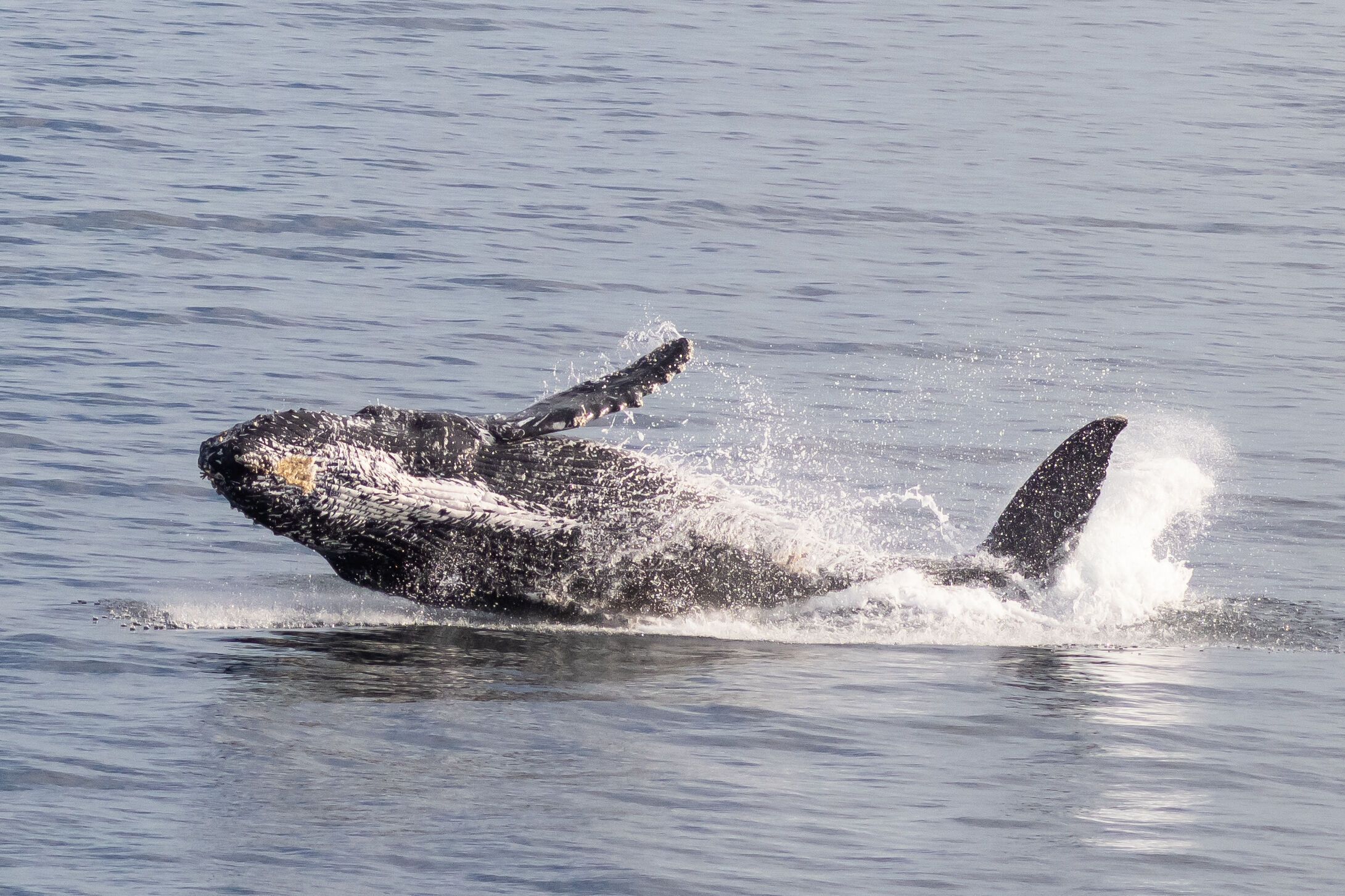 After breakfast the day continued with humpback whales breaching, fin whales swimming toward National Geographic Venture and pelicans flying in formation, one after another across the sea.