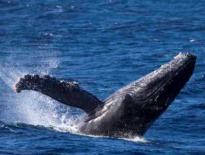 After leaving the marina during lunchtime, we headed offshore looking for more humpback whales. The wind had picked up but didn’t stop us from finding several whales. The southern part of the peninsula of Baja California is a well known mating and calving area during the winter for those humpback whales that spend the summer feeding off the coasts of Oregon, Washington, British Columbia, and the Aleutian Islands. Here the females give birth to their 2,000 pound calves, and the males compete with each other to mate with receptive females. Humpbacks are the most acrobatic of the baleen whales and today we had a great time watching some of them breaching many times pretty close to us. Amazing to see a 40-ton creature jumping out of the water! I can’t think of a better welcome to our first day in the beautiful Sea of Cortez.