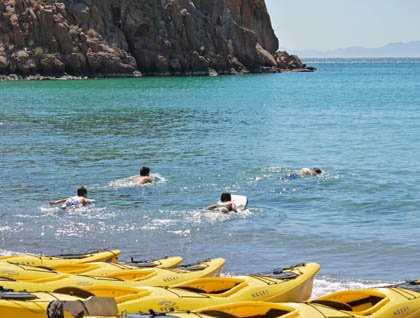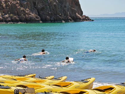 After many photos and a fulfilling lunch, we all had the chance to do a bit of souvenir shopping for loved ones in the Global Market, put on by the hotel staff. A siesta later we disembarked at Ensenada Grande for beach sunbathing, snorkeling, kayaking, and hiking in a sheltered bay. The waters were a beautiful teal, the sand was a fine white, and all on shore turned a bronze tan complimenting their bright smiles.