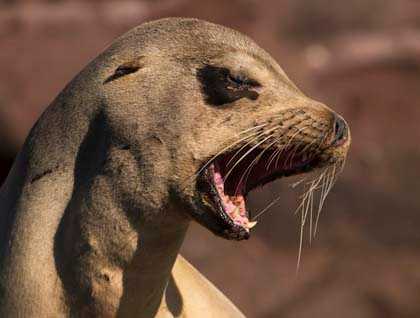 Our second full day in the waters of the Sea of Cortez started with an amazing view of Los Islotes silhouetted against a multicolored sky: shortly before sunrise the entire eastern sky turned pink, then red and bright orange for a wonderful few minutes. Then we headed towards the southern side of the small islet known as Los Islotes to drop the anchor and get ready for a morning full of water activities.