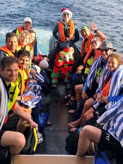 The morning held new experience and great adventure for the guests aboard National Geographic Venture. California sea lions hauled out on the rocks of Los Islotes and swam through the surrounding waters. As the first snorkelers were about to enter the water, one of the sea lions decided to enter the boat, gracefully leaping onto the bow of the Zodiac and spending about 15 minutes on board. After the sea lion went back into the water, the snorkelers followed suit. Once in the water, snorkelers found a variety of fish below the surface and playful sea lions darted and leapt around them. Zodiac tours looked at the sea lions on shore and searched the volcanic rocks, finding turkey vultures, brown pelicans, brown boobies, and blue-footed boobies.