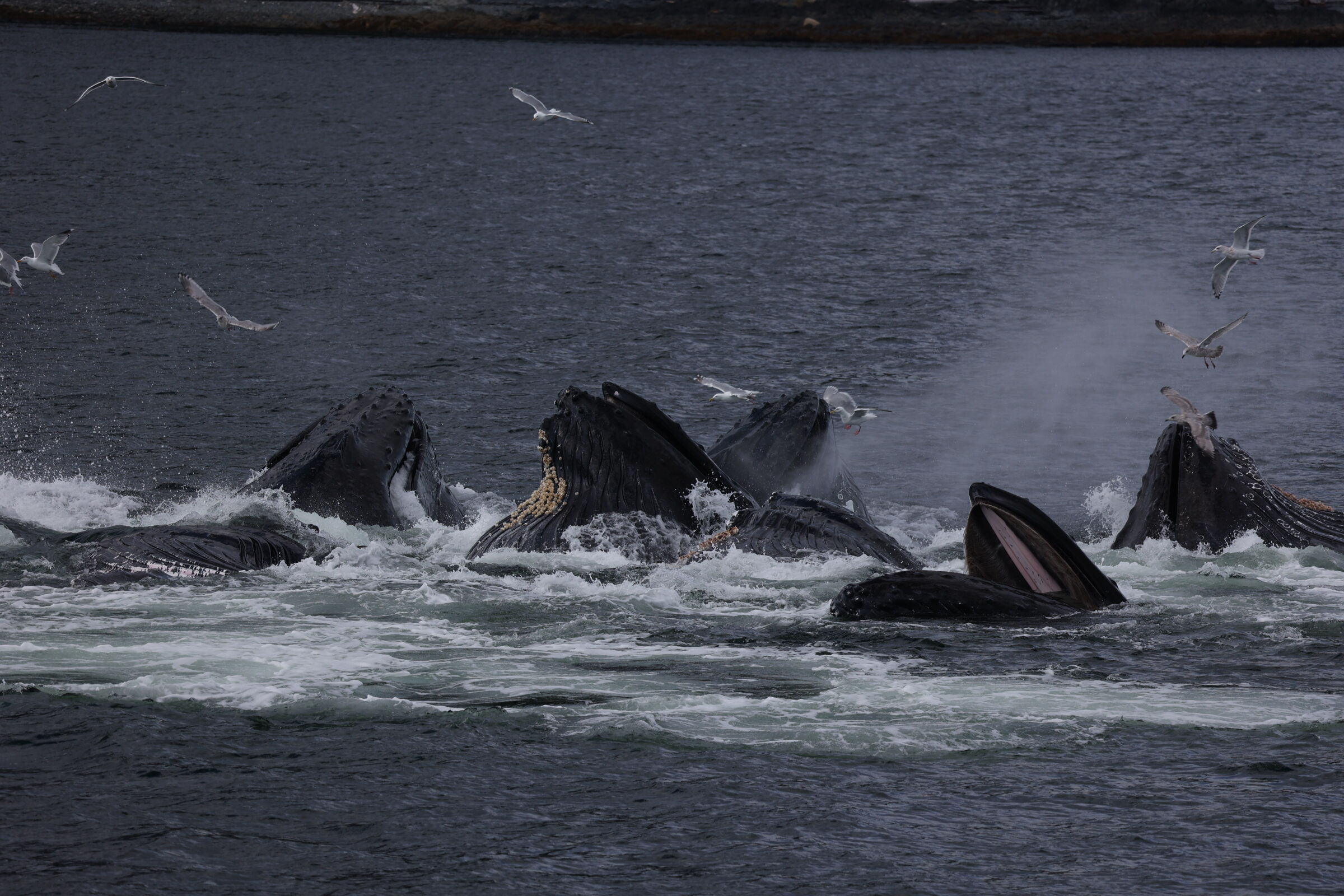 Morning found National Geographic Venture nestled in the scenic fjord of Gilttoyees Inlet. This scenic waterway is numbered with countless waterfalls that cascade down the steep walls on each side. Intermittent clouds, drops of rain, glimpses of blue sky, and the occasional sunray greeted us as we made our way, soaking, through the raw beauty of the inlet. Throughout the morning, guests were treated to a couple of programs from the naturalist team, including: “Smartphone Photography” from photo instructor Andrew Peacock and “Rainforest Ecology of the Tongass National Forest” by naturalist Lee Moll. Just before lunch, a group of humpback whales close to shore greeted us. The outside deck and bow soon filled with eager eyes as we watched countless showings of beautiful flukes. After lunch, we tucked into the ever so stunning Lowe Inlet. Two rounds of Zodiac cruises brought guests into the calm and beautiful waters in search of wildlife. Harbor seals, eagles, salmon, and the raging Varney Waterfall greeted us on our cruise through this stunning landscape.