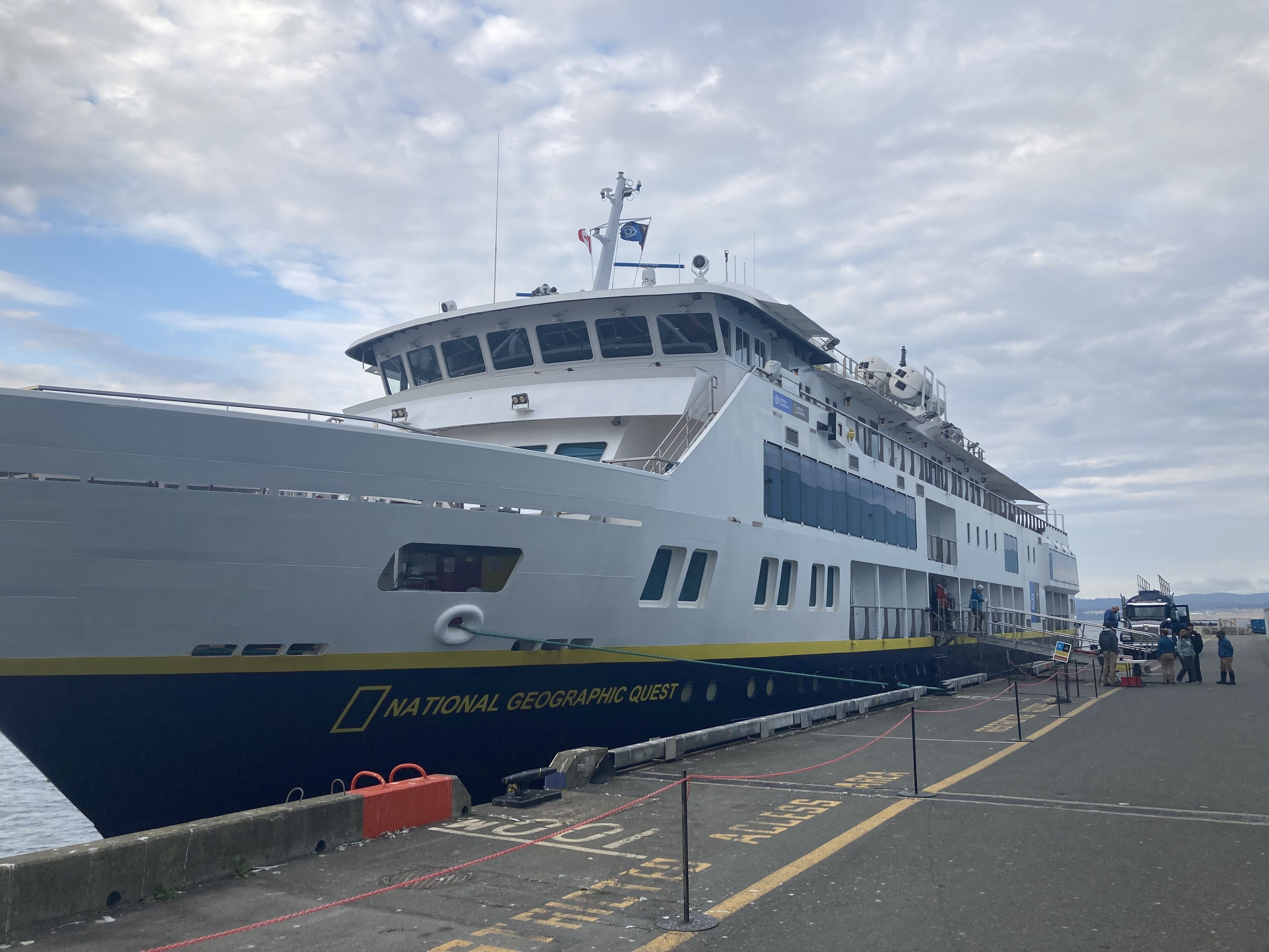Our first hint of the temperate rainforest greeted us this morning with scattered rain, mist, and mountains, providing the perfect backdrop for our hikes ashore. We also launched our fleet of kayaks into the serene and quiet waters of Lowe Inlet. The theme this morning was all about reflections. The low tide and calm winds allowed for beautiful, reflective scenes, whether we were hiking or kayaking. The water was glass-like and provided the most tranquil scene that was only disturbed by the movement of a paddle stroke. On shore, guests had the chance to casually walk throughout the intertidal zone, where each step they took had the sponginess of the rockweed, the crunch of barnacles, and the chatter of ravens to keep them company. Guests could also do a bit more exploring on one of the two bushwhack hikes, and they had the chance to meander along the shore as well as into the forest for a completely different adventure. Berries, fungi, and even carnivorous plants awaited those who ventured deep into the thickets of trees. After our morning explorations at Lowe Inlet, the ship weighed anchor and headed back out into the Glenville Channel and towards Prince Royal Island in search of wildlife.
