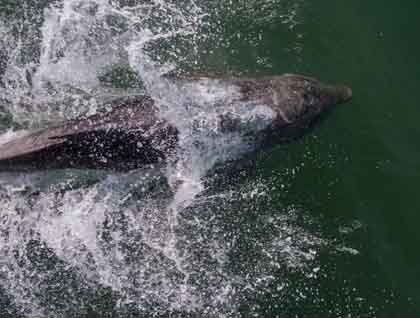 Hull Canal is extremely narrow channels within Magdalena Bay were the shallow water has been colonized by a long stretch of mangroves. The channel can change year to year so at the beginning of the canal we pick up our pilot, Alexandro Camacho, a local fisherman who comes out at the beginning of the season and marks the deepest part of the cut. For National Geographic Sea Bird, it a difficult stretch of navigation, for us, it is a wonderful opportunity to view some of the residents of this important ecosystem. Frigatebirds, herons, egrets, and many shore birds line the way for us, as curious of us as we are of them. All afternoon we watch the birds, three coyotes were seen on the beach, and at one point a group of bottlenose dolphins rode our bow as we cruised the length of the canal.