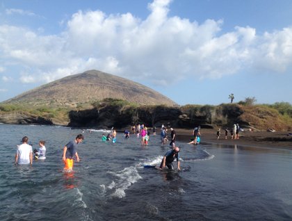 During lunch we cruised out through La Entrada and turned south into the Pacific with gentle swells behind us as we made our way towards Land’s End at the tip of the peninsula. Black-vented and pink-footed shearwaters used the air pushed by waves to get their lift. Red-necked phalaropes passed in flocks of 50 or so, and a very dark peregrine falcon flew by thrilling at least 20 of our guests. Later in the day a minke whale breached several times showing its sharply pointed rostrum, white belly, and ventral groves. We don’t see minkes often, so for some of us it was one of the thrill of the day. Our ship continued south, pushed along with the four-foot, white-capped seas that later rocked us to sleep.