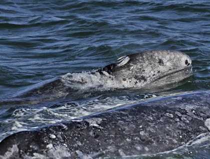At first light, National Geographic Sea Bird cruised steadily north through the peaceful Pacific towards the entrance to Magdalena Bay. Once inside, the decks began to buzz with excitement as we spotted the first gray whales of the voyage. The naturalists explained that the bushy-shaped spouts, blotchy color, and dorsal “knuckles” are characteristic of this species. The whales surfaced to replenish their oxygen supplies and then arched for deeper dives with flukes raised towards the bright blue sky.