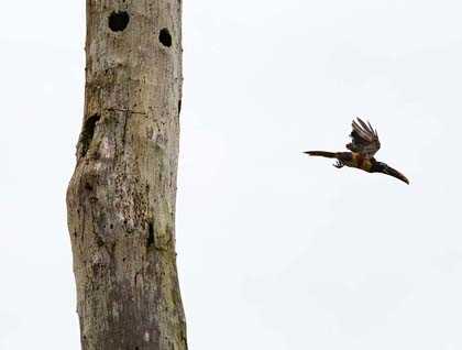 In the afternoon, we headed to a flooded forest called Flor de Castaña for exploration and swimming. This place is mind-blowing! Everything here is lush green, despite the fact that the forest is actually made up of dead trees. These trees play an important role in the ecosystem of the rainforest, because they provide a home for a variety of Amazonian creatures, including toucans, parrots, long-nosed bats, and martins. Among all these vibrant life forms, we found flocks of sand-colored night hawks, all of them very well camouflaged on the bark of the dead trees. It was a marvelous outing full of sightings, and we learned that here in the green world, lifeless trees are in great demand!
