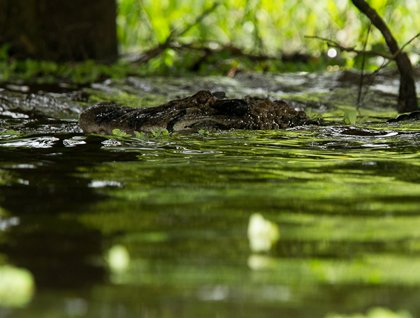 In the afternoon, following a quick lunch, we moved on to enjoying the lagoon in, under and above the water. Divers went out to a nearby island where they found a beautiful, colorful reef. Snorkelers used our little floating island, the snorkel platform, to enjoy a fringing reef on the sheltered side of Mangareva, where they were joined by the glass-bottom Zodiac. The corals in the lagoon were extensive and very lovely, featuring lacey branching and table—shaped species of Acropora. There were also lots of fish to enjoy, including a couple of big groupers, which are a very good sign of a healthy reef.