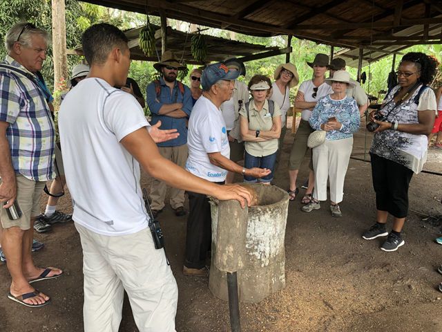 Leaving Delfin II at 06:00 for our morning skiff ride, we explored the Marayali River. The birds were up and working on obtaining breakfast while the three-toed sloths chose to sleep the morning hours away. On our way back to the ship, we encountered a snail kite having its namesake prey for breakfast right in front of us! The rest of the morning was spent at Amazonas Village getting an introduction to life along the river. Demonstrations of how to get sugar water out of cane, how to make and dye fiber for baskets and other items, as well as food preparation were given. We chatted with children who had monkeys as pets! Our evening was topped off by a toast to the beginning of the actual Amazon River, where the Marañon and Ucayali Rivers converge. Salud! This is my final daily expedition report as a full-time Lindblad employee. I am retiring after 21 years as a National Geographic certified photo instructor and naturalist, ready to begin a new life of travel and exploration. I want to give a big thank you to all of those Lindblad guests whom I have traveled with over the years, and I will leave you with these words: Travel as often as you can, as far as you can, for as long as you can. May God and your luggage be with you!