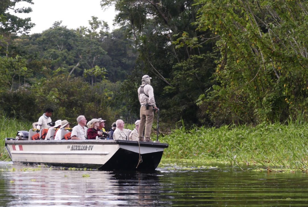 Leaving Delfin II at 06:00 for our morning skiff ride, we explored the Marayali River. The birds were up and working on obtaining breakfast while the three-toed sloths chose to sleep the morning hours away. On our way back to the ship, we encountered a snail kite having its namesake prey for breakfast right in front of us! The rest of the morning was spent at Amazonas Village getting an introduction to life along the river. Demonstrations of how to get sugar water out of cane, how to make and dye fiber for baskets and other items, as well as food preparation were given. We chatted with children who had monkeys as pets! Our evening was topped off by a toast to the beginning of the actual Amazon River, where the Marañon and Ucayali Rivers converge. Salud! This is my final daily expedition report as a full-time Lindblad employee. I am retiring after 21 years as a National Geographic certified photo instructor and naturalist, ready to begin a new life of travel and exploration. I want to give a big thank you to all of those Lindblad guests whom I have traveled with over the years, and I will leave you with these words: Travel as often as you can, as far as you can, for as long as you can. May God and your luggage be with you!
